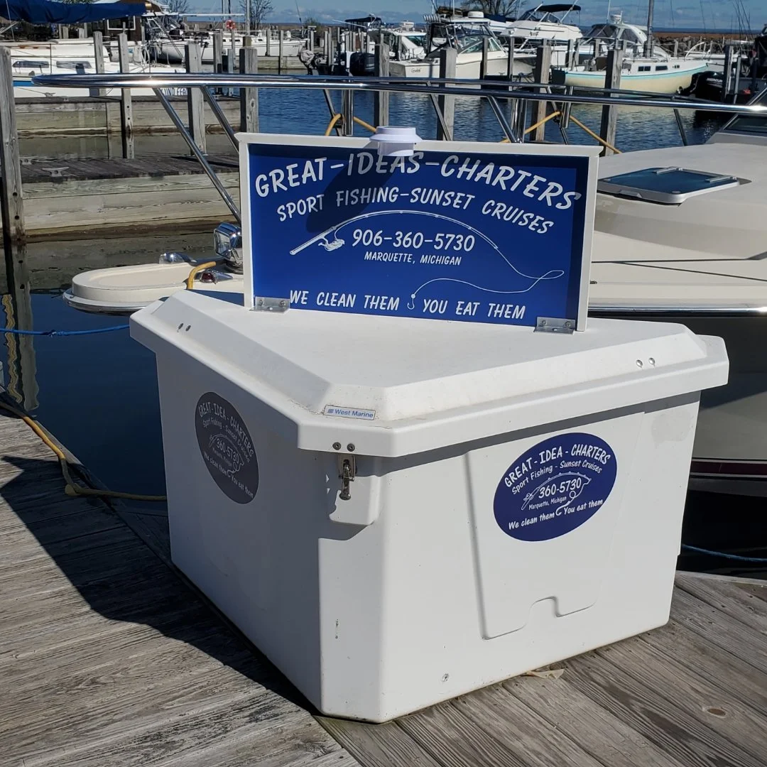 Great Idea Charters leases a slip in the Cinder Pond Marina, located at 260 N. Lakeshore Blvd., Marquette, MI 49855. We are located at slip number 48 on pier 3. Look for our sign on our dock box!